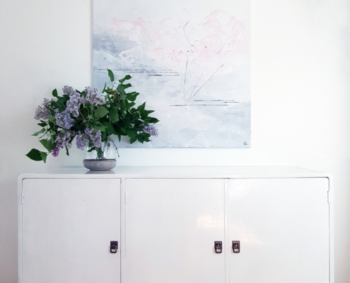 Värimaailma asiakkaalta, muuten melko vapaat kädet. Herkkä työ jossa ihania yksityiskohtia.