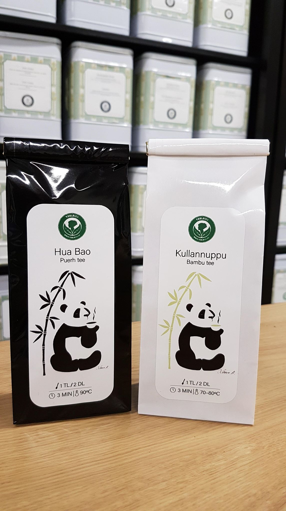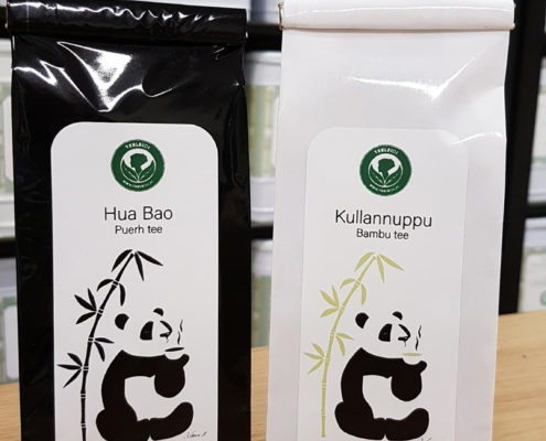 Suunnittelin pelkistetyt pandat teepaketin etiketiksi Jyväskylässä sijaitsevalle Teeleidille. Käsin piirretty, Photoshopilla muokattu.