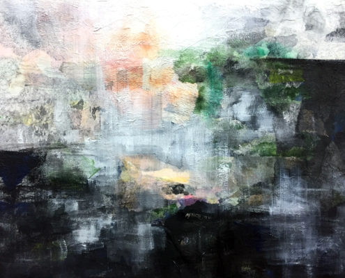 Myyty – Valoa Kohti. Sekatekniikka, akryylimaalaus ja paperikollaasi. 60×80 cm.